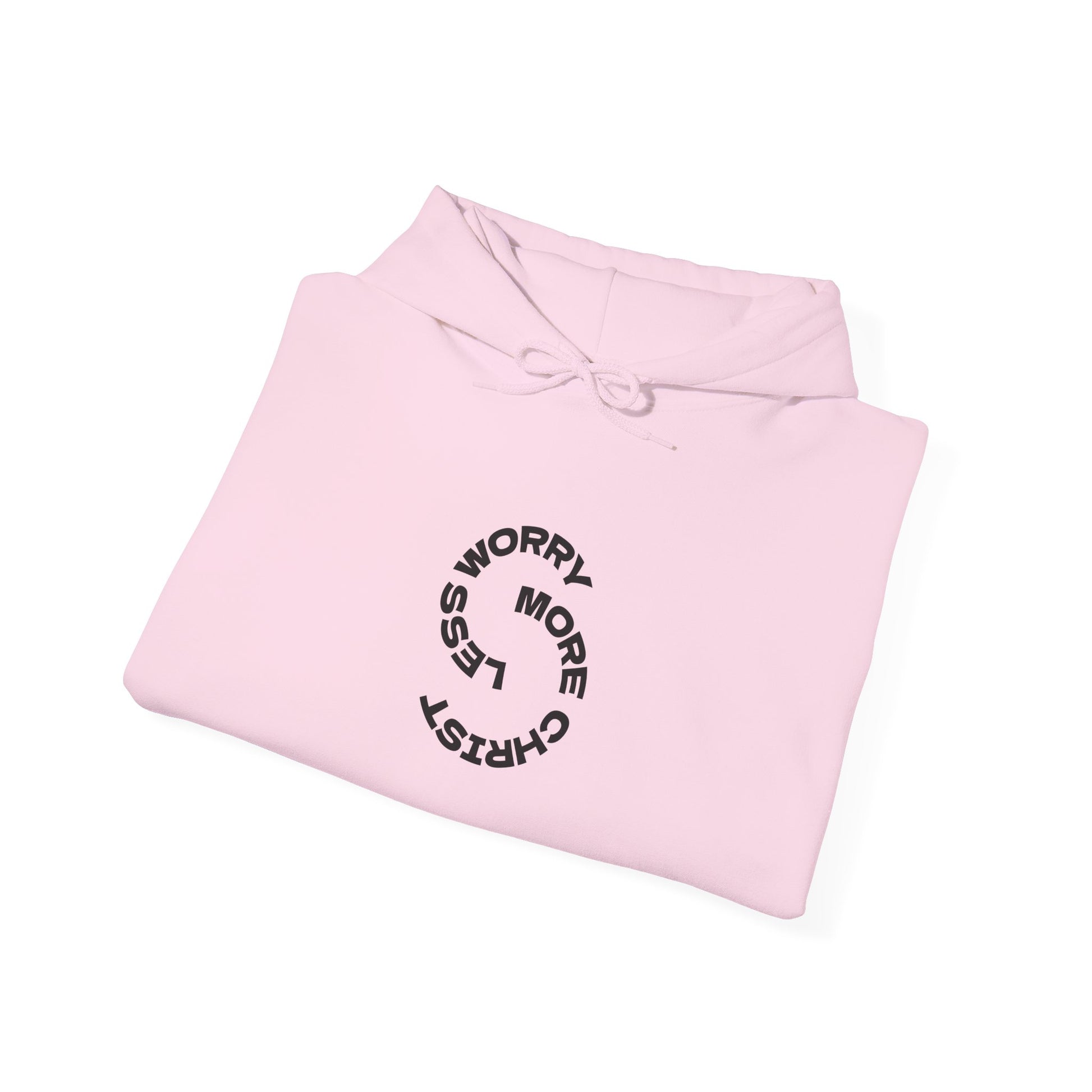 Hoodie — 'LESS WORRY, MORE CHRIST' Minimalist Circle Graphic Hooded Sweatshirt